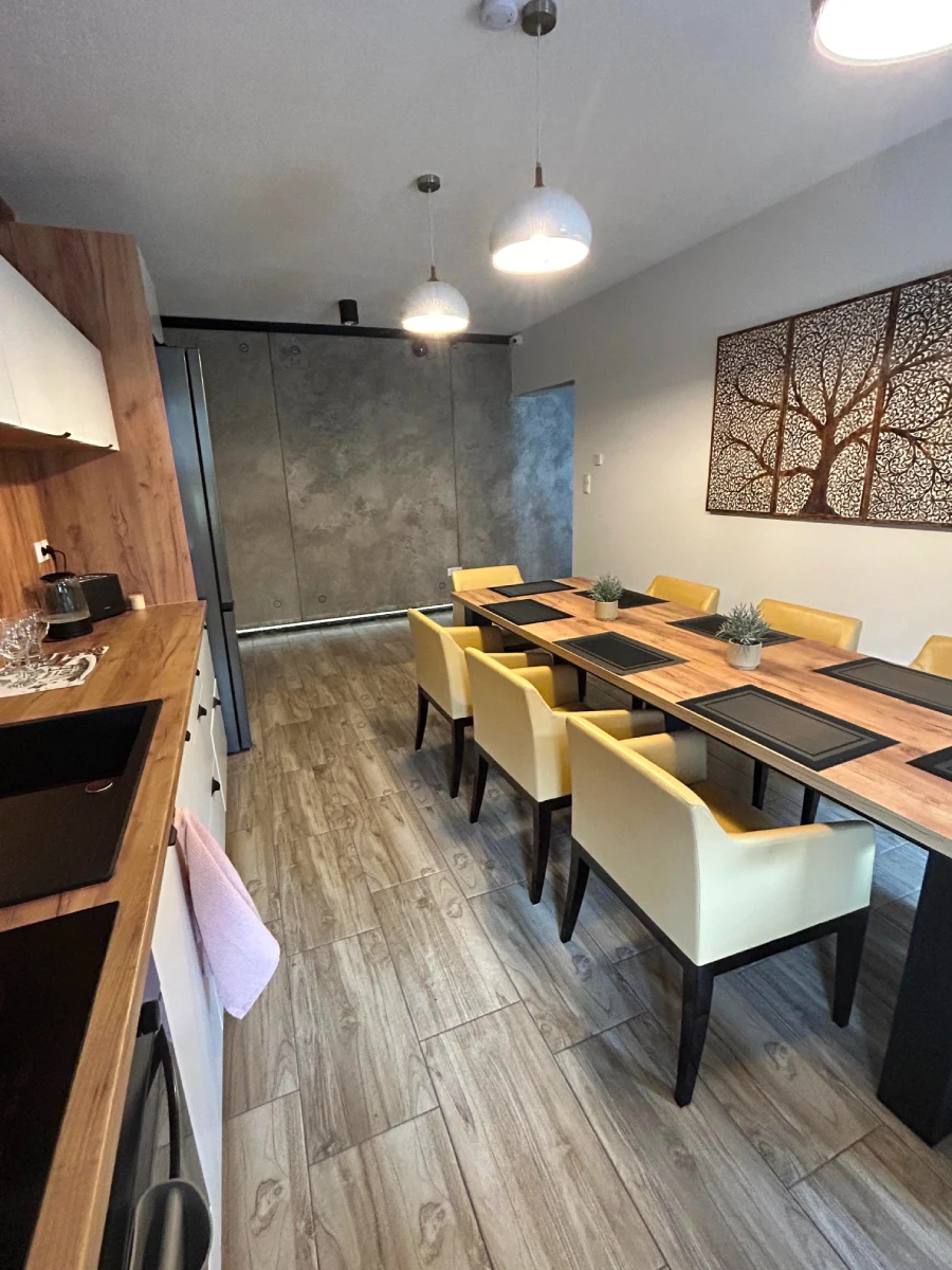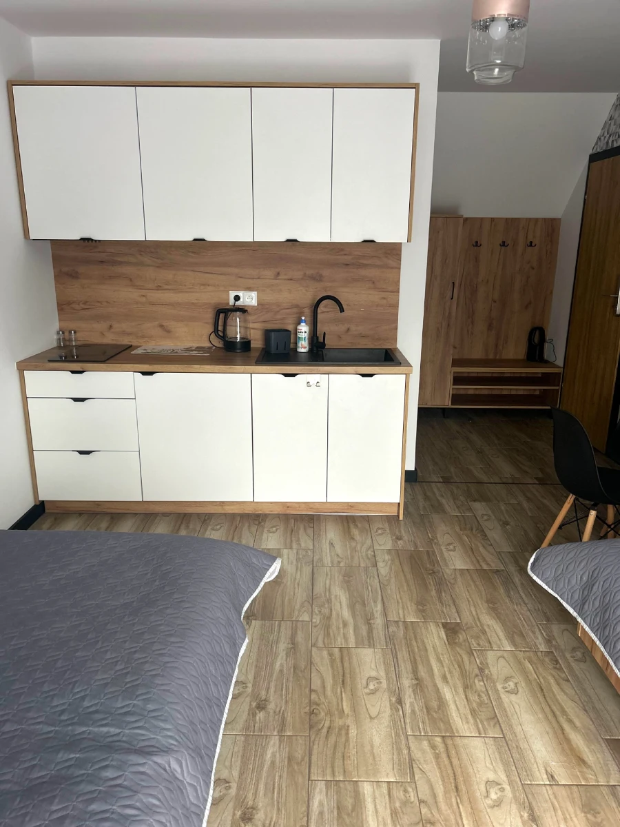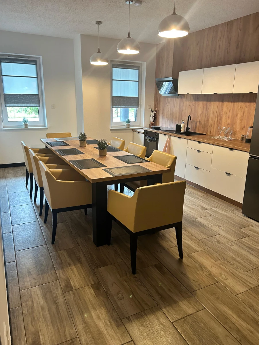 Nasz Dom to idealne miejsce na komfortowy wypoczynek w sercu regionu. Oferujemy 9 przytulnych i wygodnych pokoi – 3 z prywatnym aneksem kuchennym, 5 funkcjonalnych z dostępem do przestronnej, wspólnej kuchni oraz duży apartament z przestronnym salonem i dwiema sypialniami.